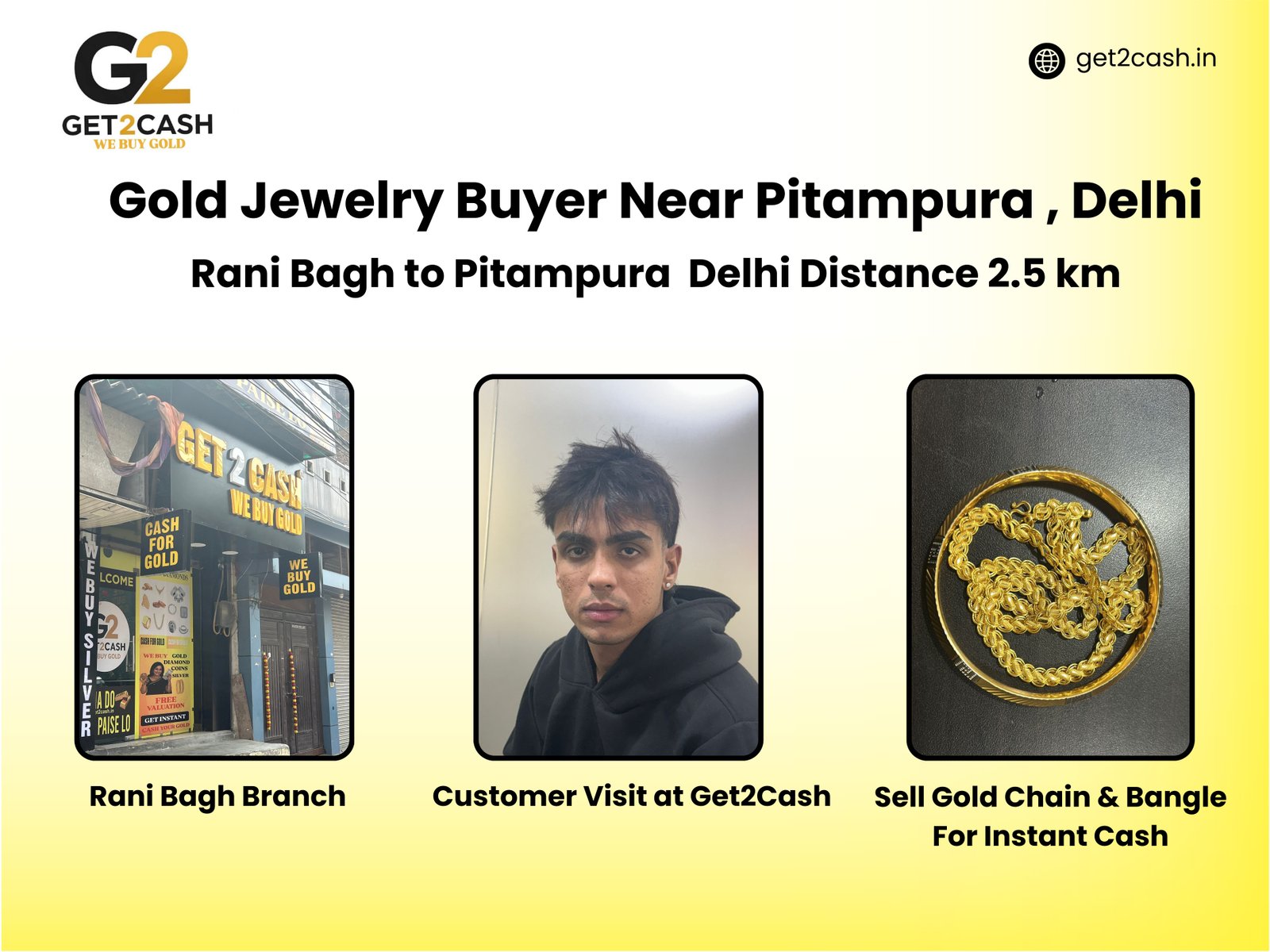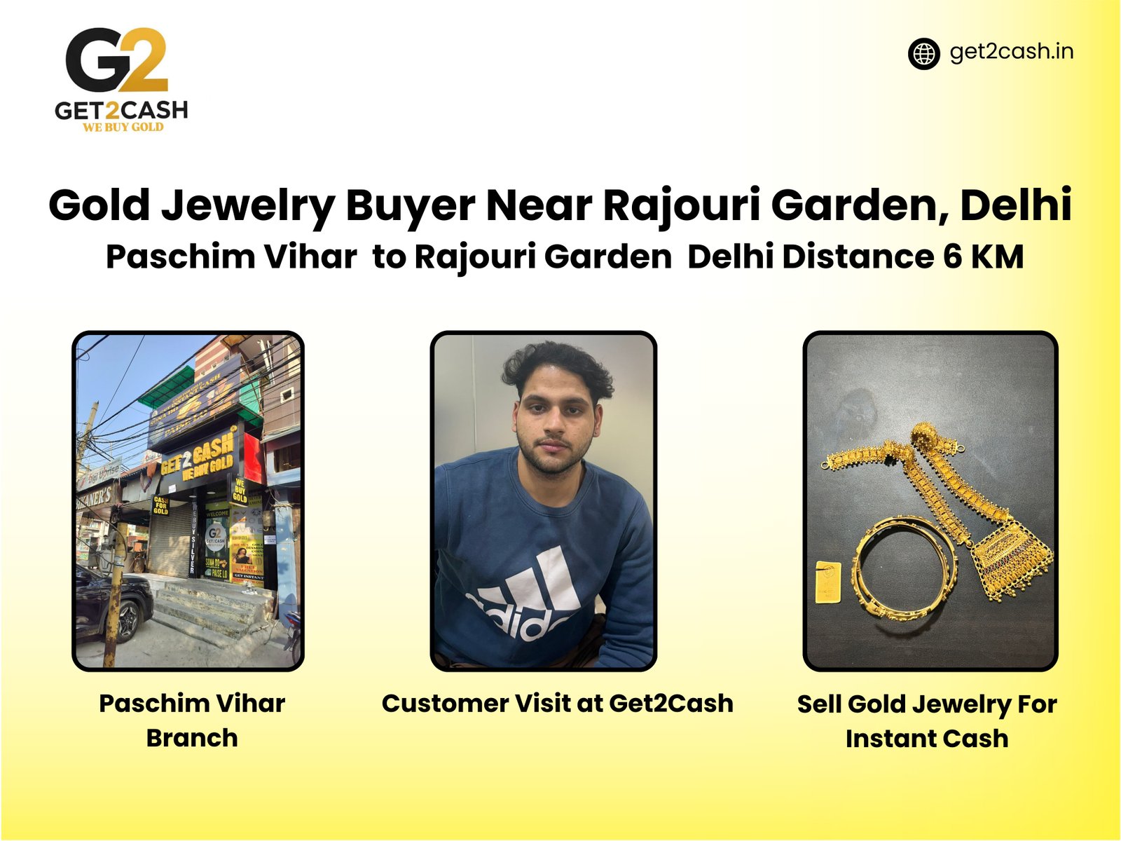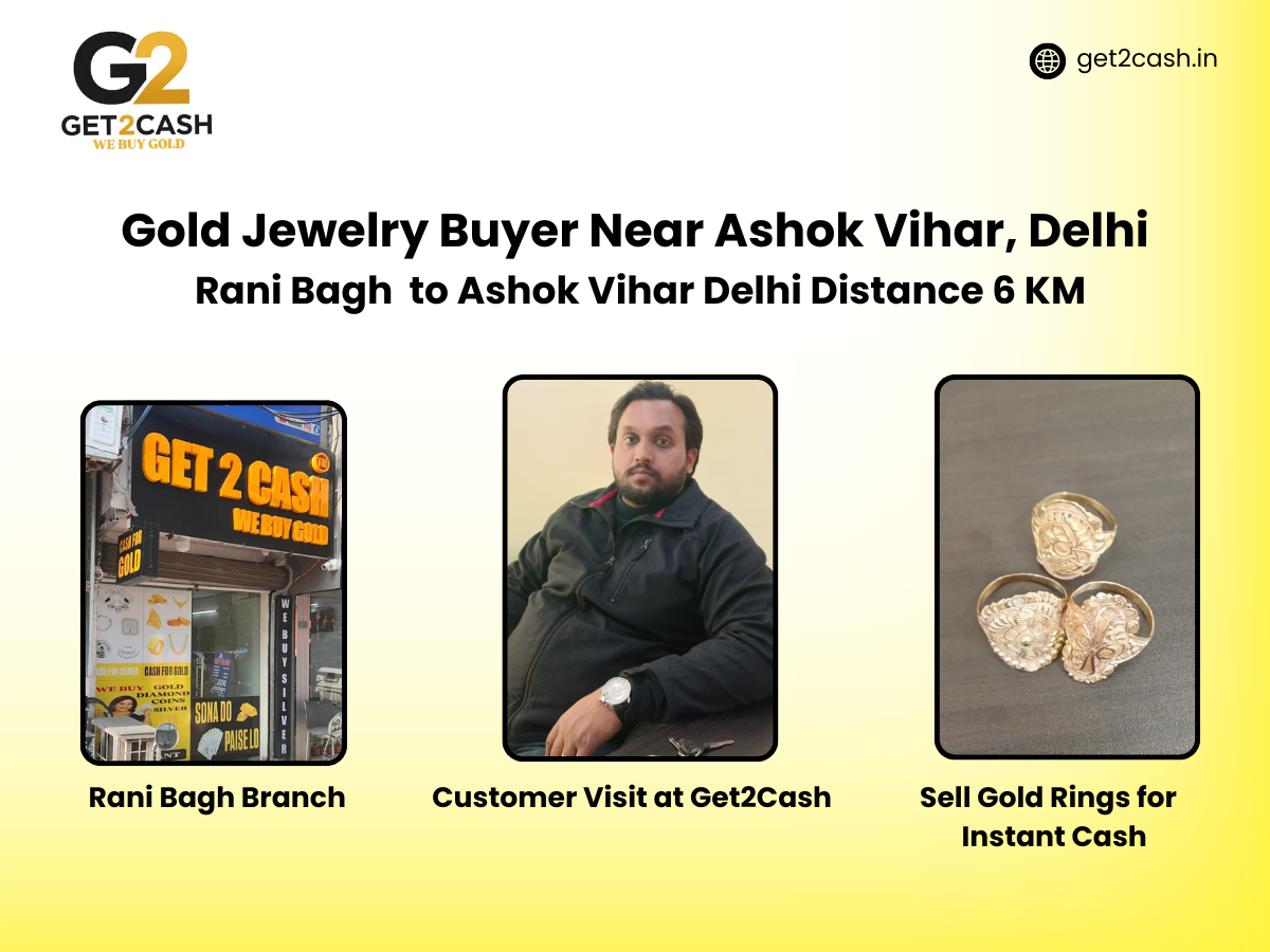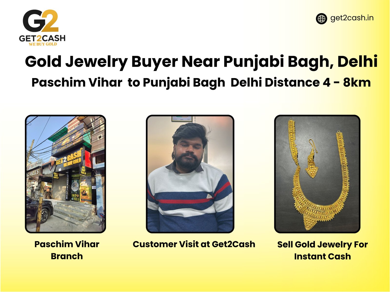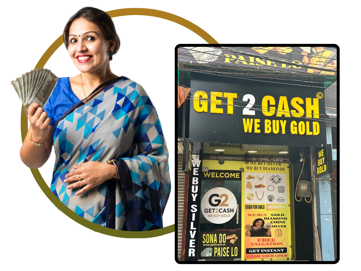 Sell your gold, silver, diamond at nearest Get2Cash -We Buy Gold Branch in Rani Bagh & Paschim Vihar Delhi. 100% Transparency Process. Safe & Secure at best Market Price.