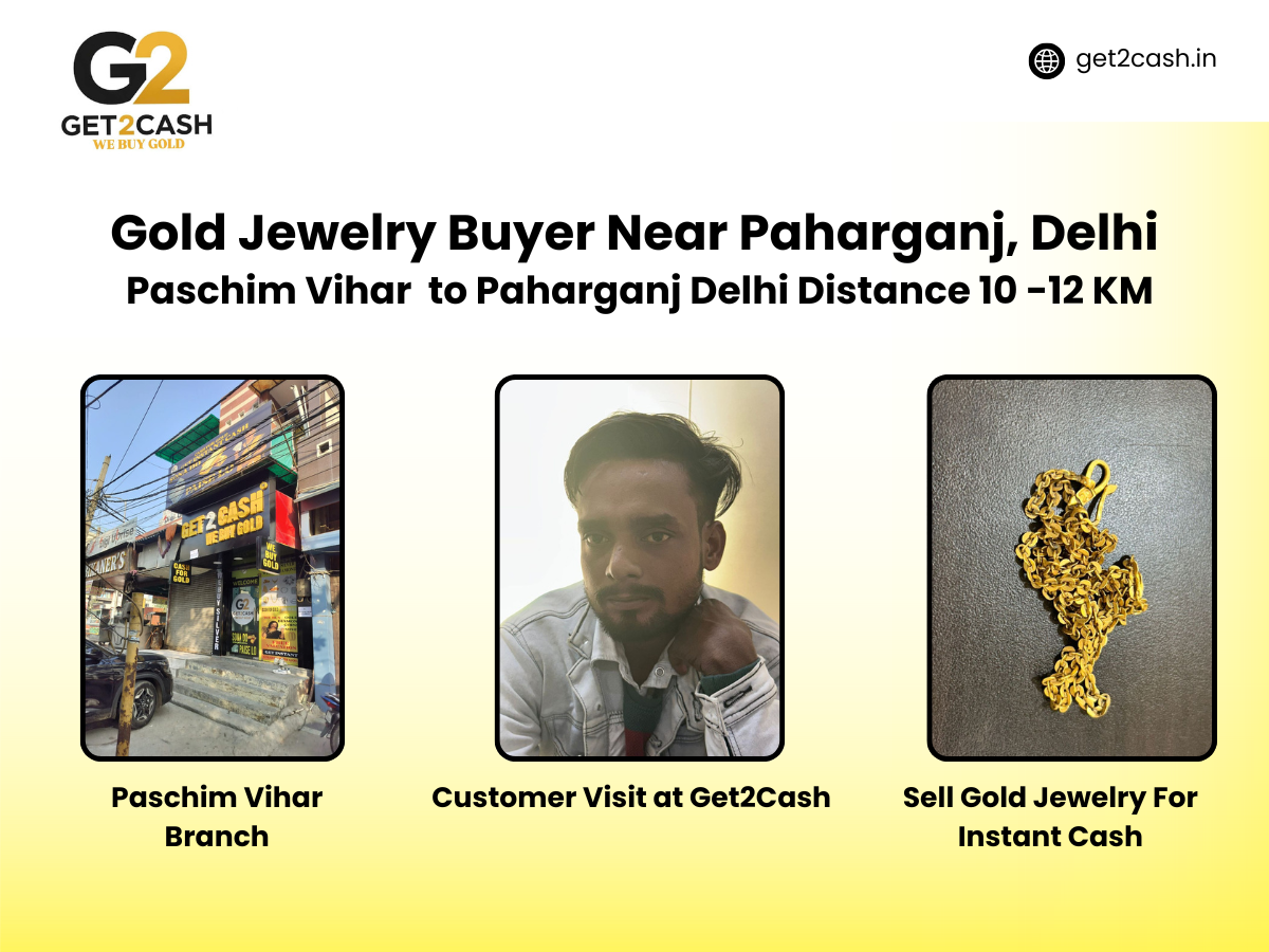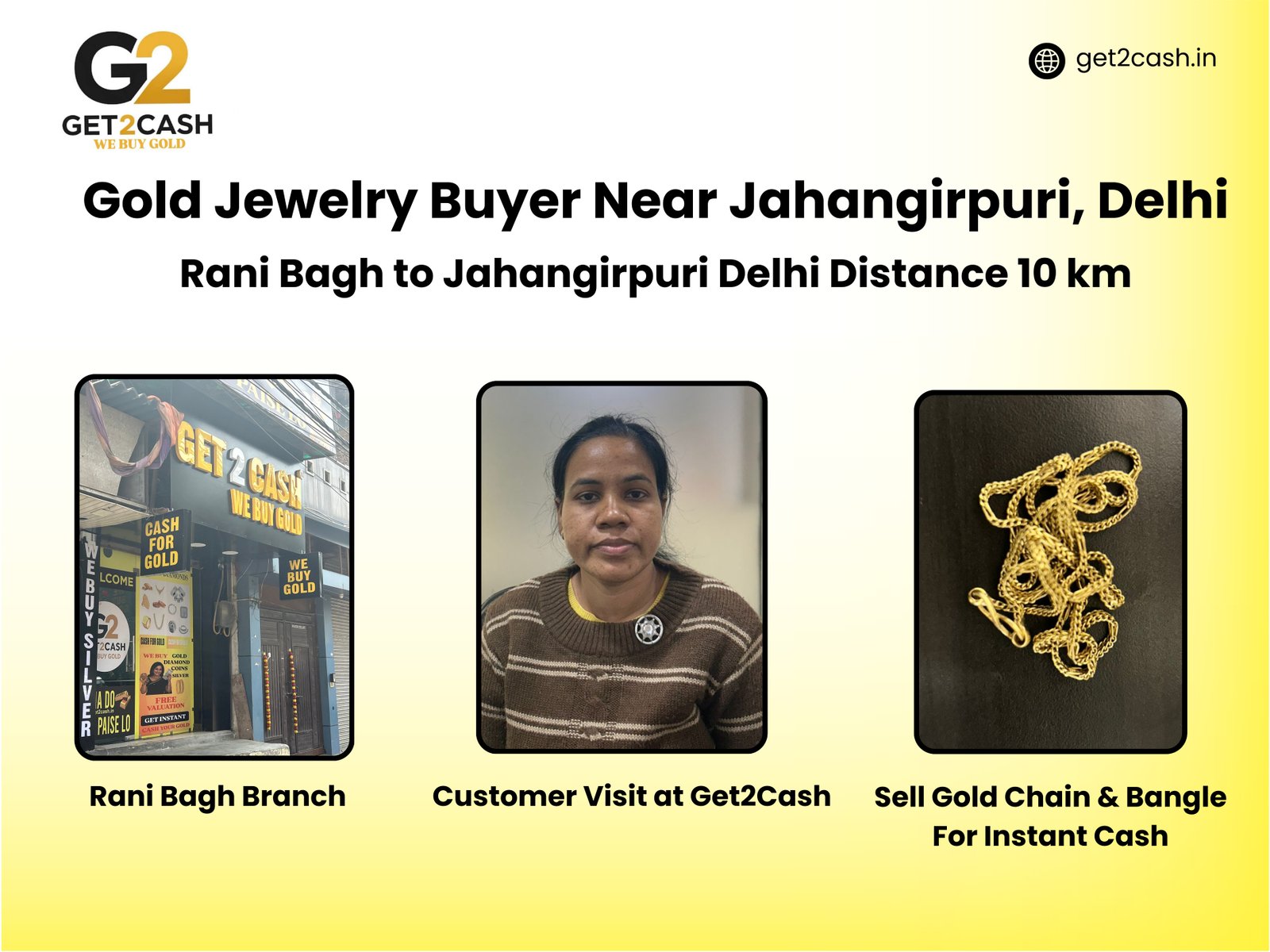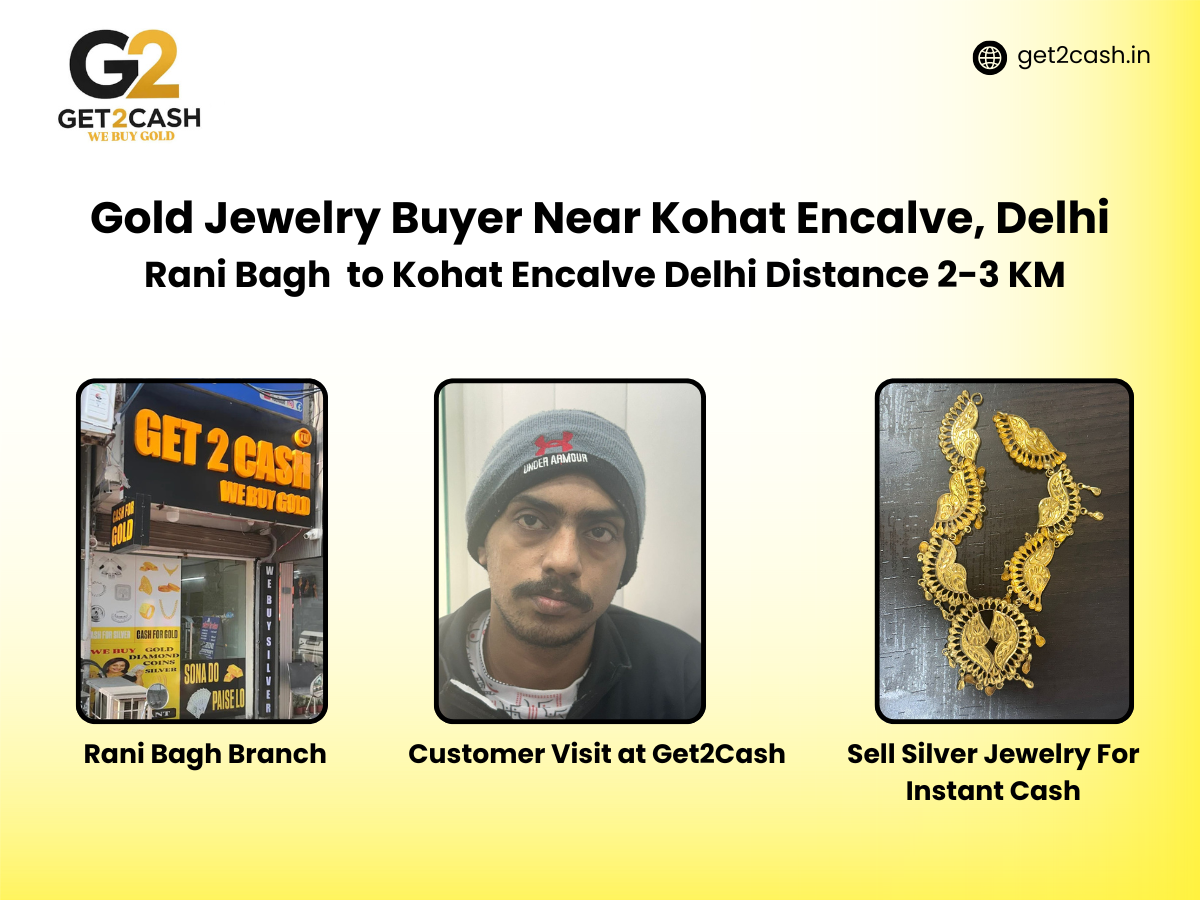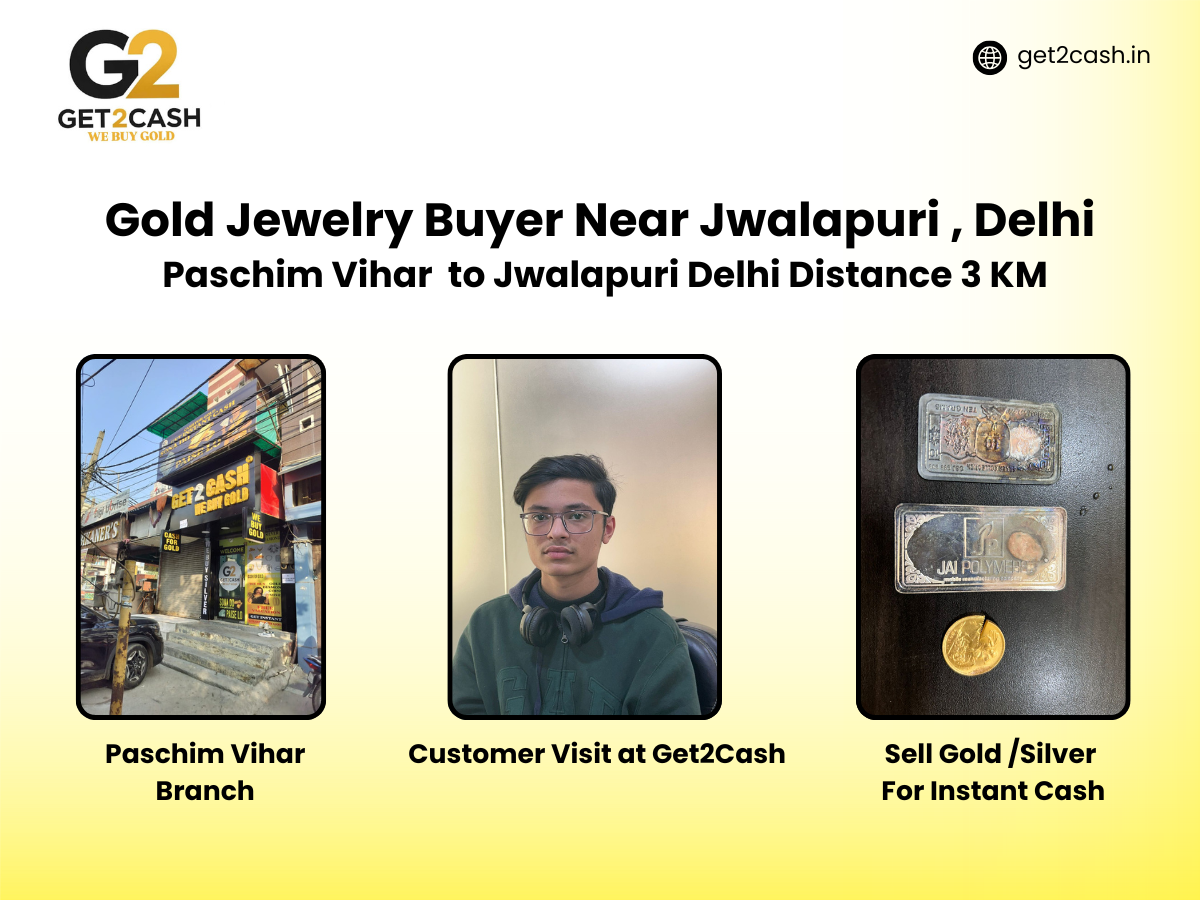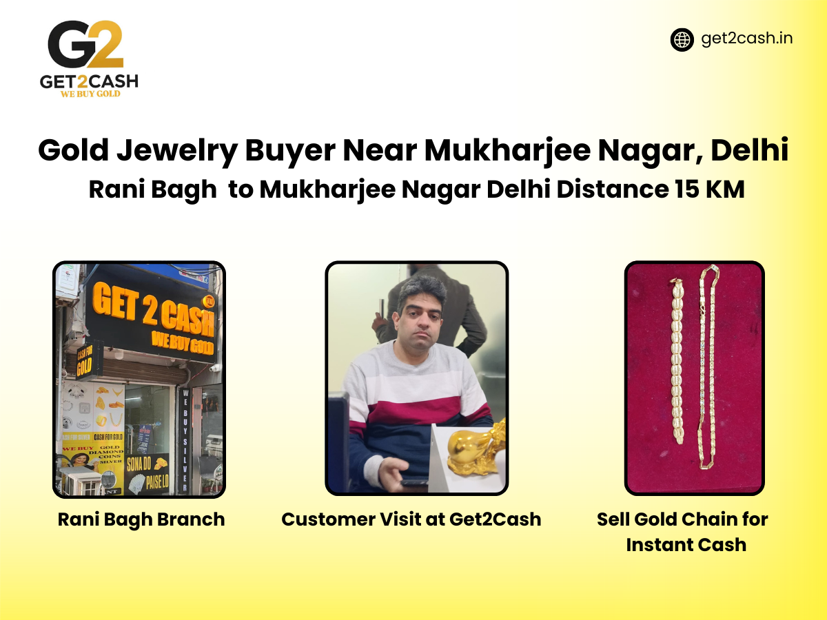 Sell your gold, silver, diamond at nearest Get2Cash -We Buy Gold Branch in Rani Bagh & Paschim Vihar Delhi. 100% Transparency Process. Safe & Secure at best Market Price.