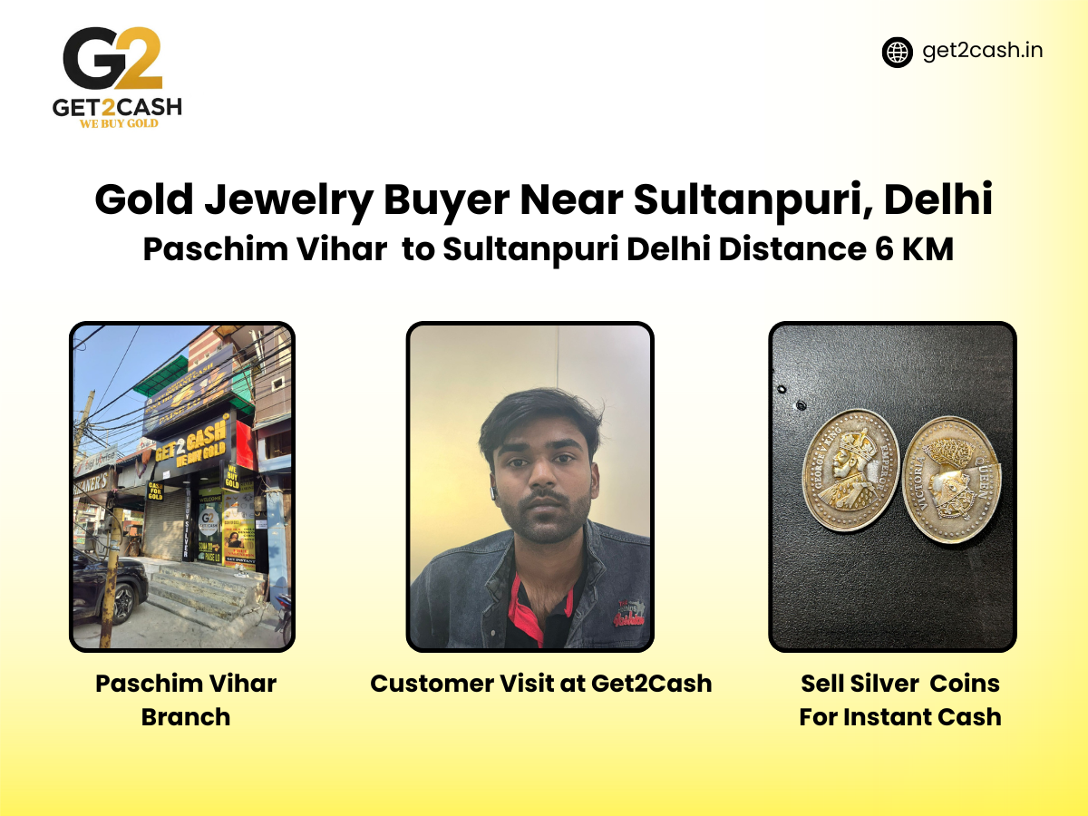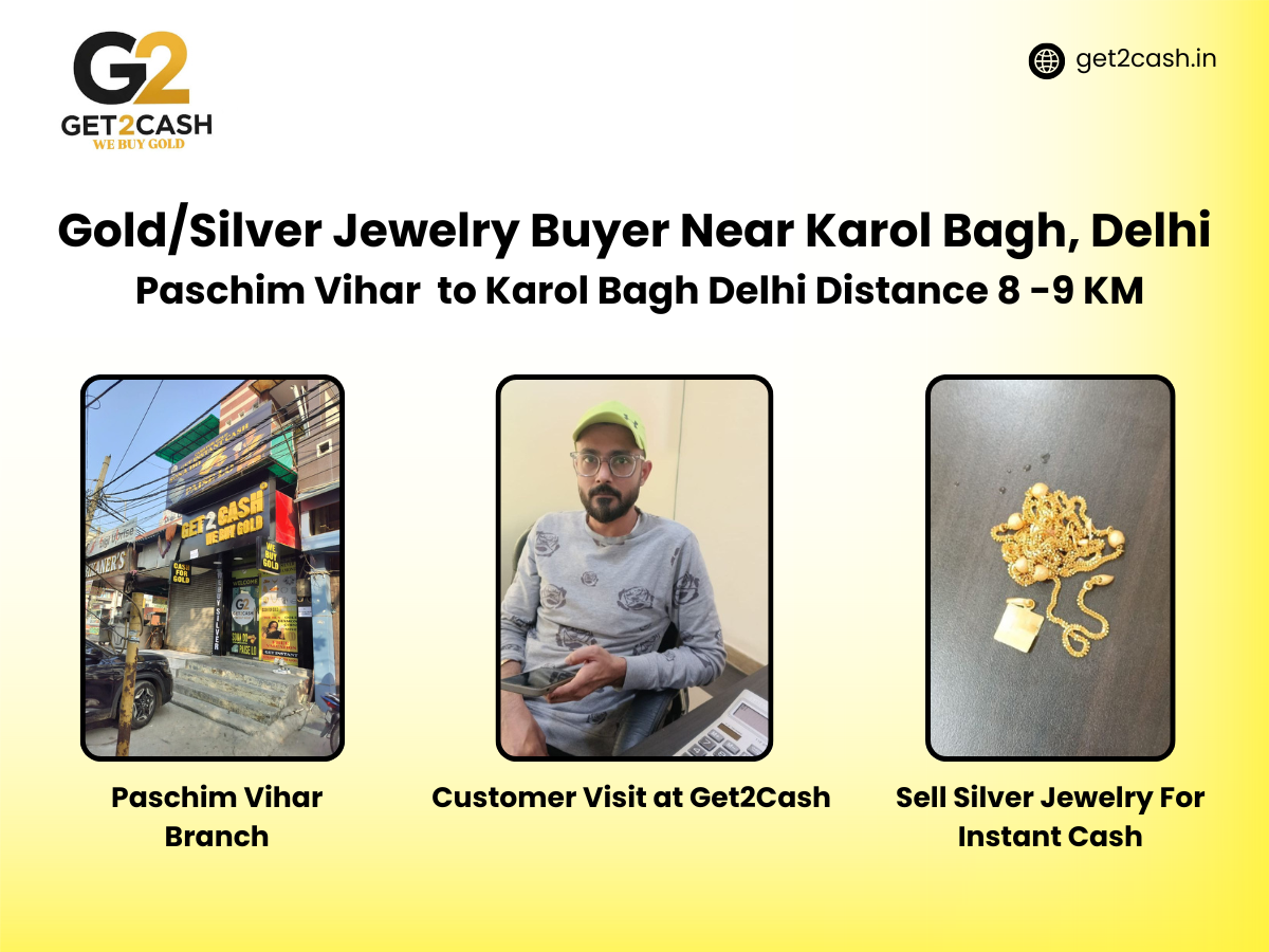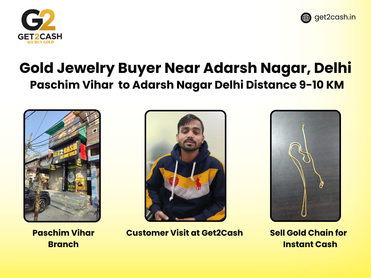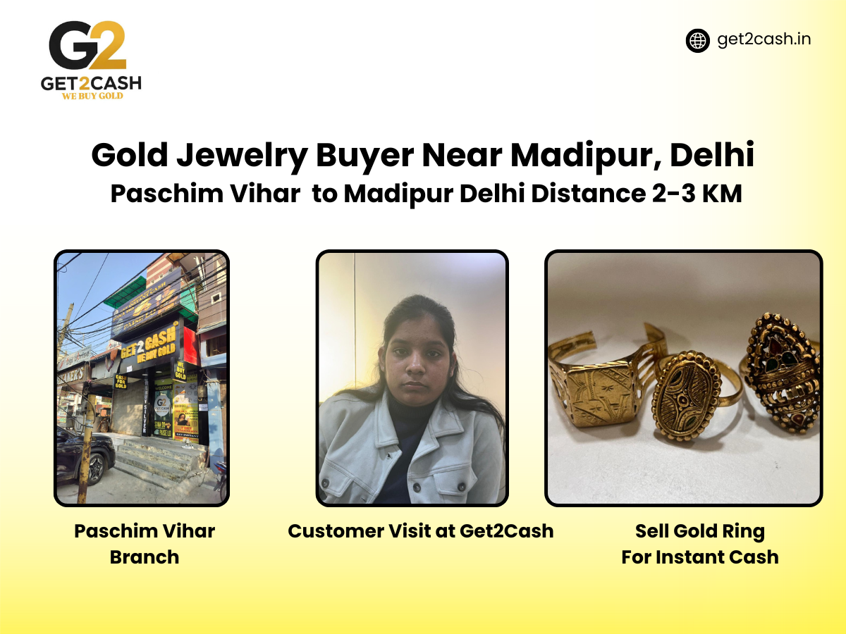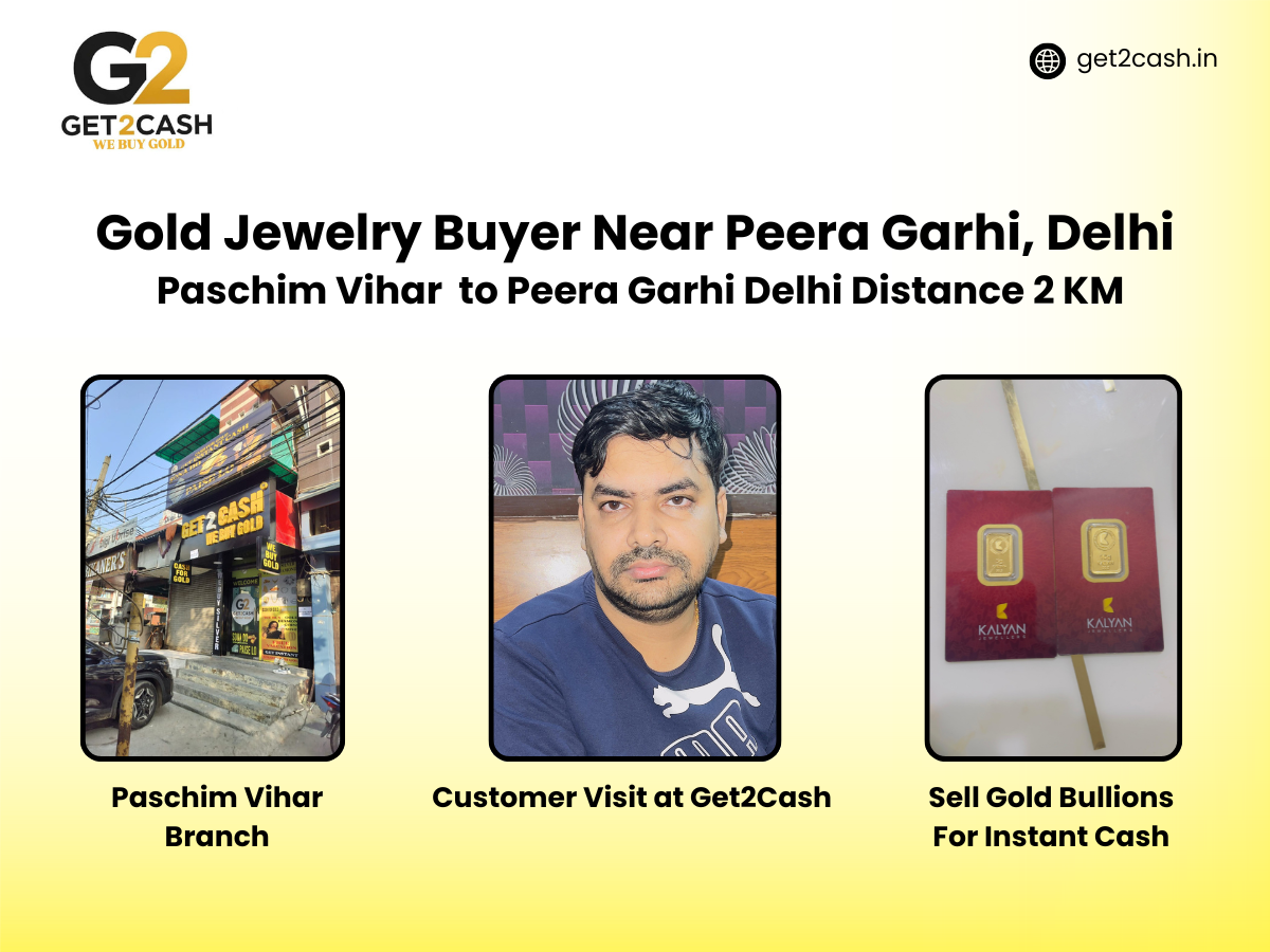 Sell your gold, silver, diamond at nearest Get2Cash -We Buy Gold Branch in Rani Bagh & Paschim Vihar Delhi. 100% Transparency Process. Safe & Secure at best Market Price.